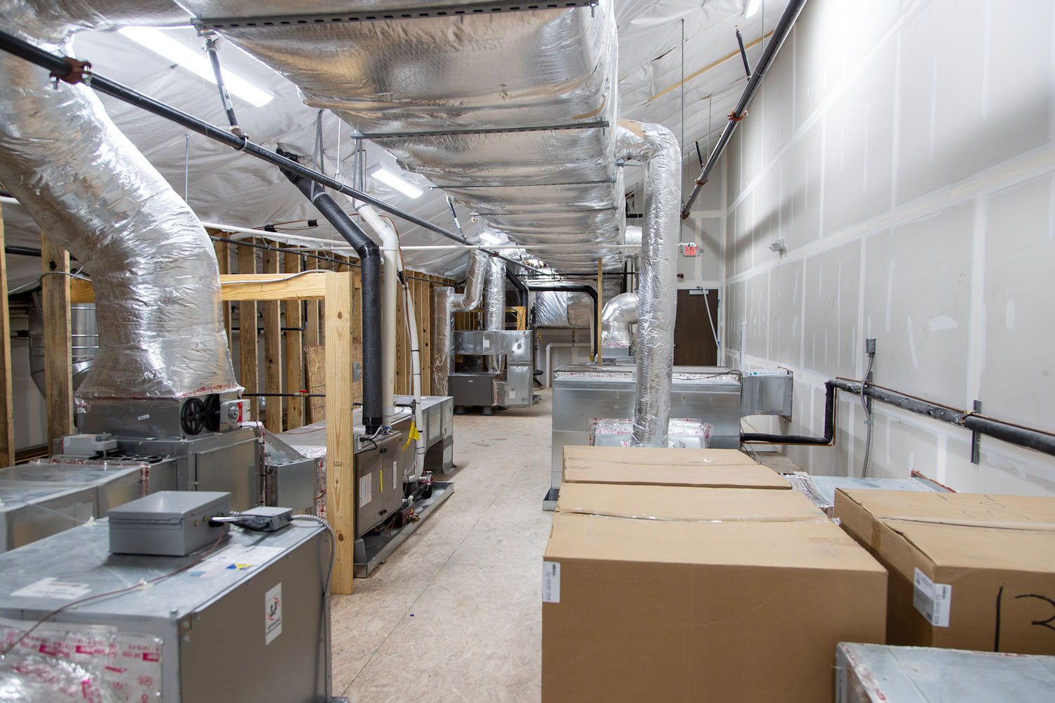 In addition to ecological constraints, the team navigated long lead times for critical equipment and materials. To mitigate delays, TST implemented a detailed procurement and logistics strategy. This included ordering key components early and designating specific staging areas on site. One staging area was climate controlled to safely store items delivered ahead of their installation phase. The project was carefully phased to maintain a safe and efficient job site while accommodating early deliveries and protecting construction materials.