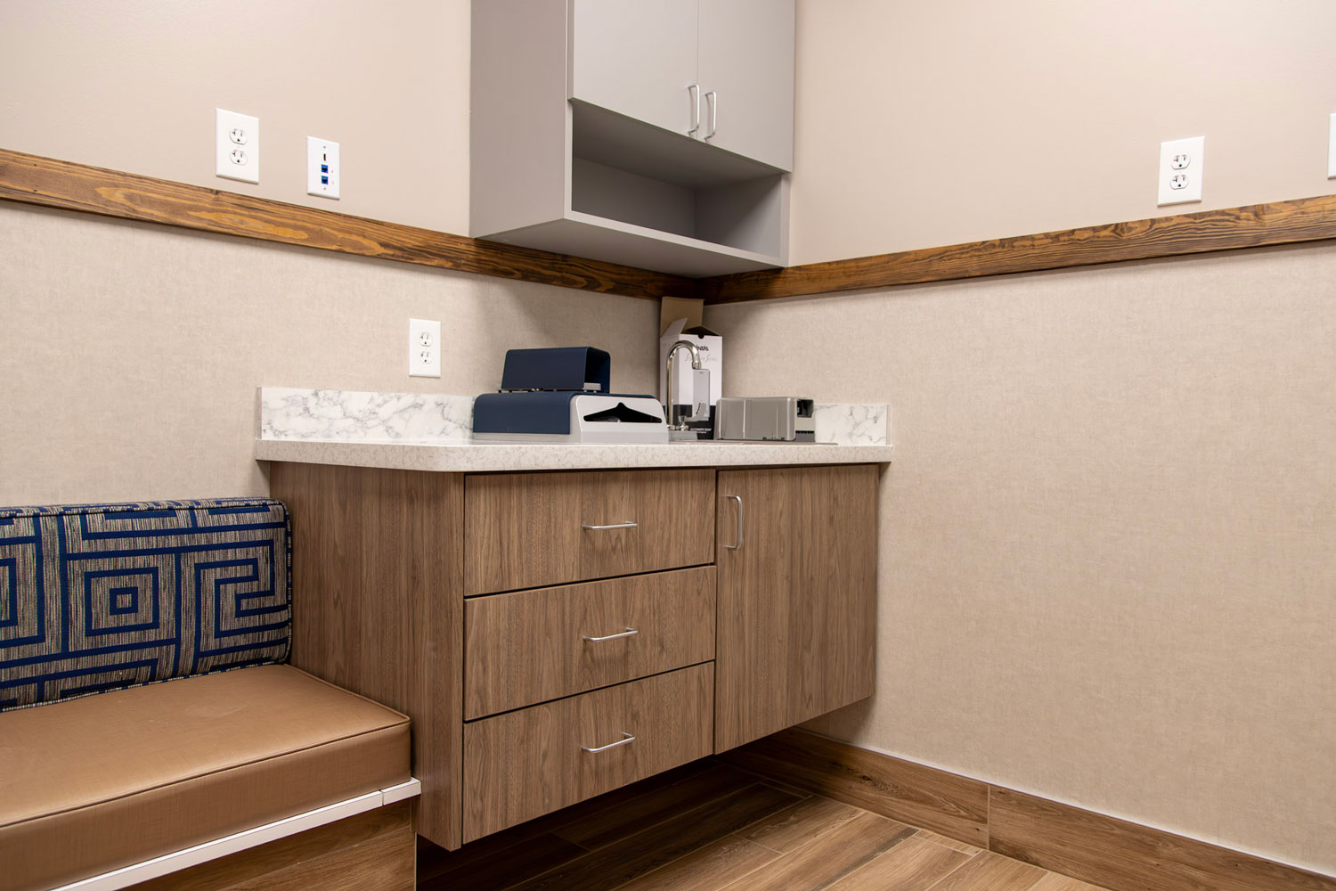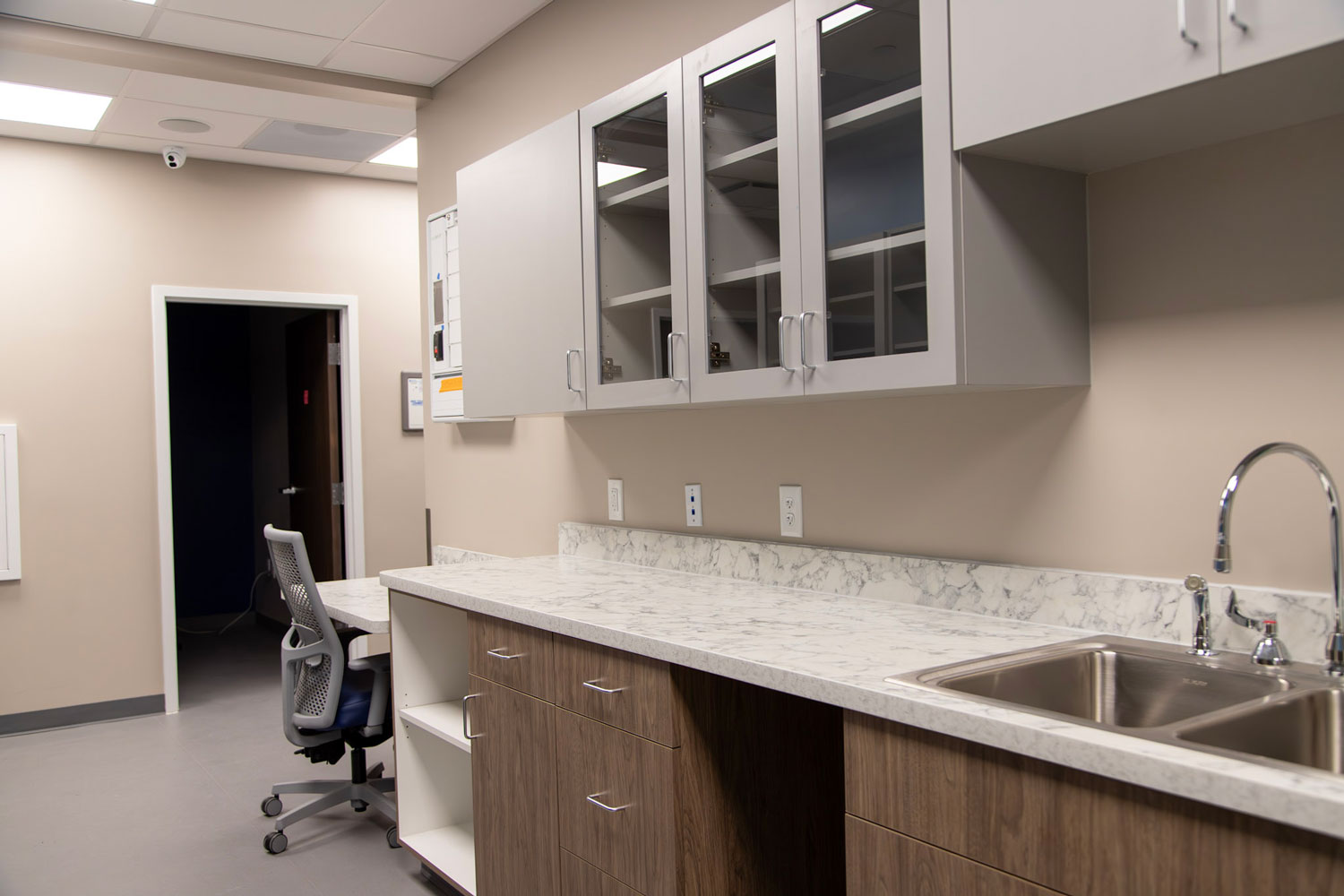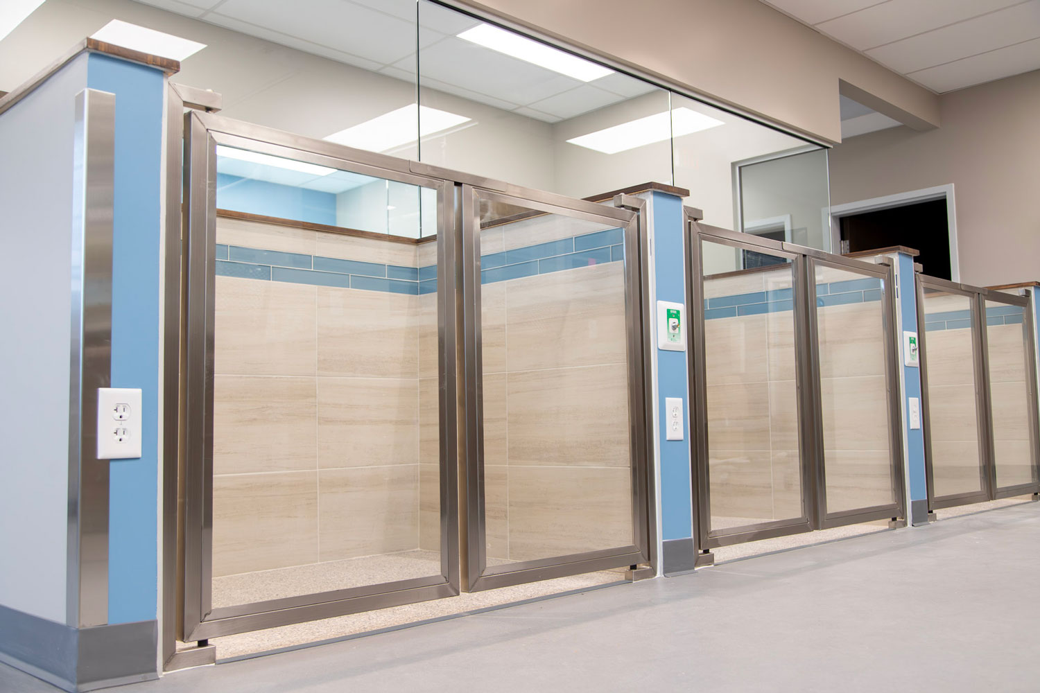 Specialty construction elements were integrated to meet the complex operational needs of the facility. These include sound-isolating wall assemblies, waterproof wall systems, oxygen supply infrastructure, and coordination for integrated veterinary equipment. A lead-lined medical waste storage room was also constructed to ensure safe handling of hazardous materials in compliance with health and safety regulations.