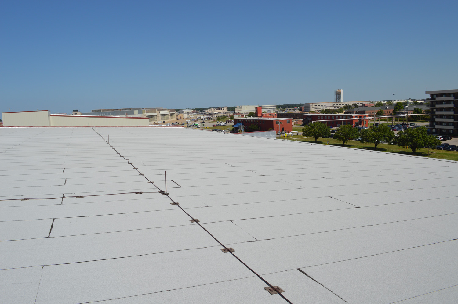 Engineering upgrades included a new multi-zone HVAC system with associated electric and plumbing connections, a new hot water source, replacement of electrical equipment including motor control centers and transformers, new interior lighting throughout, and a building-wide lightning protection system. Sustainable features include high-albedo roofing and advanced lighting controls.